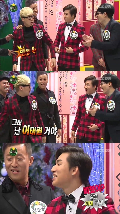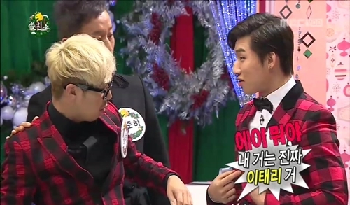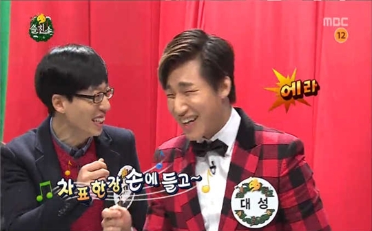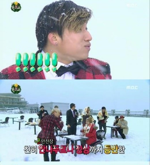 「無限挑戦〜スルチンソパーティー〜」 てそん寄りなあらすじ。 (フル動画リンクはページ最下部にあります) 2013.12.21放送MBC 「無限挑戦〜スルチンソパーティー(※)〜」 にゲスト出演したビッグバンのテソン。 (※スルチンソ(寂しい友達)パーティー=年末の約束も無く寂しく過ごしてそうな友達を招待するパーティー) ![]() 無限挑戦レギュラーメンバーのハハと衣装がかぶったテソン。 ![]() 「これはイタリアの服だ」と自慢すると、 ハハは 「これはイテウォンの服だ」と応戦。 ![]() そのままダンス対決に発展した。 ![]() (ここまでのくだり、ページ下に動画置いてます) 久し振りにバラエティ番組に出演したテソンは 「この時間に出るというのが良いですね。家にいてもずっとテレビ見てるし。」と幸せそうに笑った。 「視聴者の皆さんに驚かれると思いますが、 ビッグバンのコンサートは週末ばっかなので、 平日スケジュールが無くて暇なんです。」 するとユ・ジェソクが 「じゃぁなんで昨年のモッチンソパーティー※に来なかったんだよ!」とつっこむ。 (※モッチンソ(不細工な友達)パーティー=容姿が残念な友達を招待するパーティー) ![]() テソン 「僕が出る必要は無い、K.willが出演してたじゃないか!」と反論。 そんなテソンにジェソクが 「最近はK.willのほうが(テソンより見た目が)マシだよ!」 ![]() 「今日のヘアスタイルはキム・ウビンにしたのに!」とテソン。 ![]() 人気ドラマ「相続人たち」のキム・ウビンの髪型だというテソンに、 無限挑戦メンバーは 「いやいや、ソン・デグァン※にそっくりだ!」と猛反発し笑いを誘った。 ![]() ![]() (※ソン・デグァン=韓国の歌手。韓国歌手協会の理事長。) ![]() また、各自が持参したお弁当を紹介するコーナーでテソンは 「これがあの有名なYG社員食堂弁当だ!」と、 焼いたハムと豆腐の煮物が詰めらたYG弁当を披露。 美味しいと評判のYG食堂の弁当は出演者達の羨望を受けた。 ![]() 「自分よりももっと寂しそうな人」に、各自が持参した弁当をプレゼント。 プレゼントされたメンバーは室内で弁当を堪能するが、 一方の弁当を貰えなかったテソン達はMBCの屋上へ移動。 ![]() 特にこの日は大雪。 テソンや少女時代サニー、アンヨンミ(ミチGOのMVの人)さんらが 雪が降る極寒の屋上でカップラーメンを食べ、爆笑を誘った。 ![]() 以下、動画。 テソン登場〜ハハとダンス対決 郎outubeから見る フル動画 埋め込めなくなったので以下から飛んで下さい。 スマホ・PCで見れます RangTV(1と2に分かれてます) PC向け(スマホだと重いかも) Tudou.com 以上は韓国のニュースサイト数件を参考にまとめたものです。 参考にしたニュースサイト記事は、 これとか これとか これとか これとか これとか これなどなど。 |