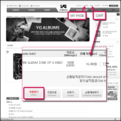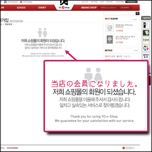 このページは、ハングルまったくわからない、英語も苦手、だけどYG e-shopでお買物がしてみたい、そんな人用に、