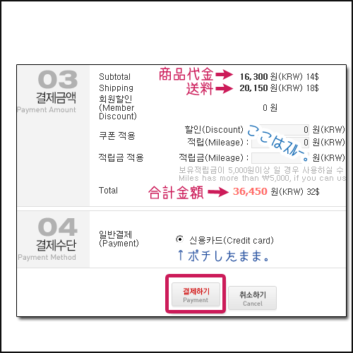 それが無事に済めば、一番下のボタン Paymentをクリックします。