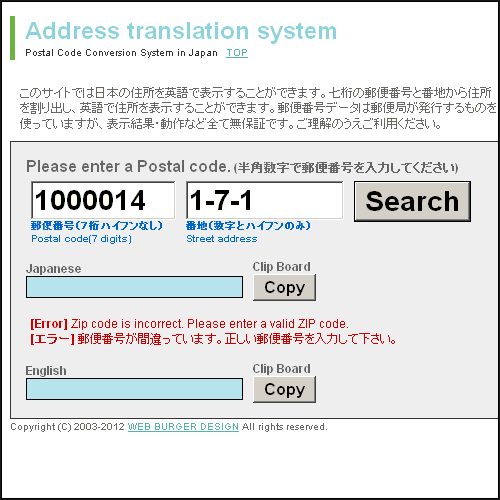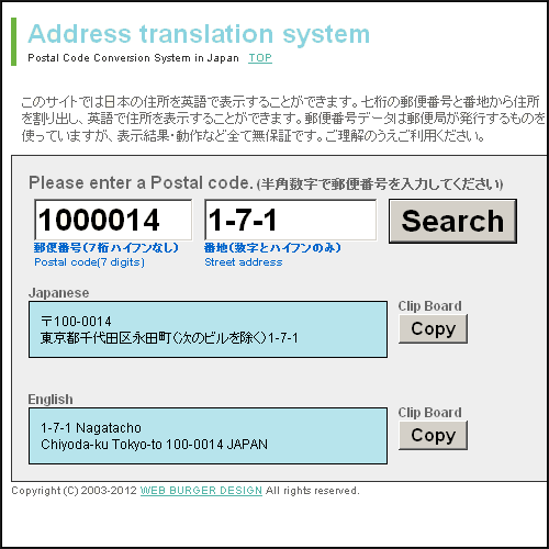 郵便番号と番地を入れたら、 Searchをクリックするだけです